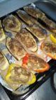 ■今月のレシピ ~夏野菜の肉詰め~ 写真はオーブン焼きした物ですが、ナスが油を吸うのでフライパンで油をひいて焼いた方が柔らかく仕上がります。ケチャップ、ウスターソース、大根おろしとポン酢など、お好